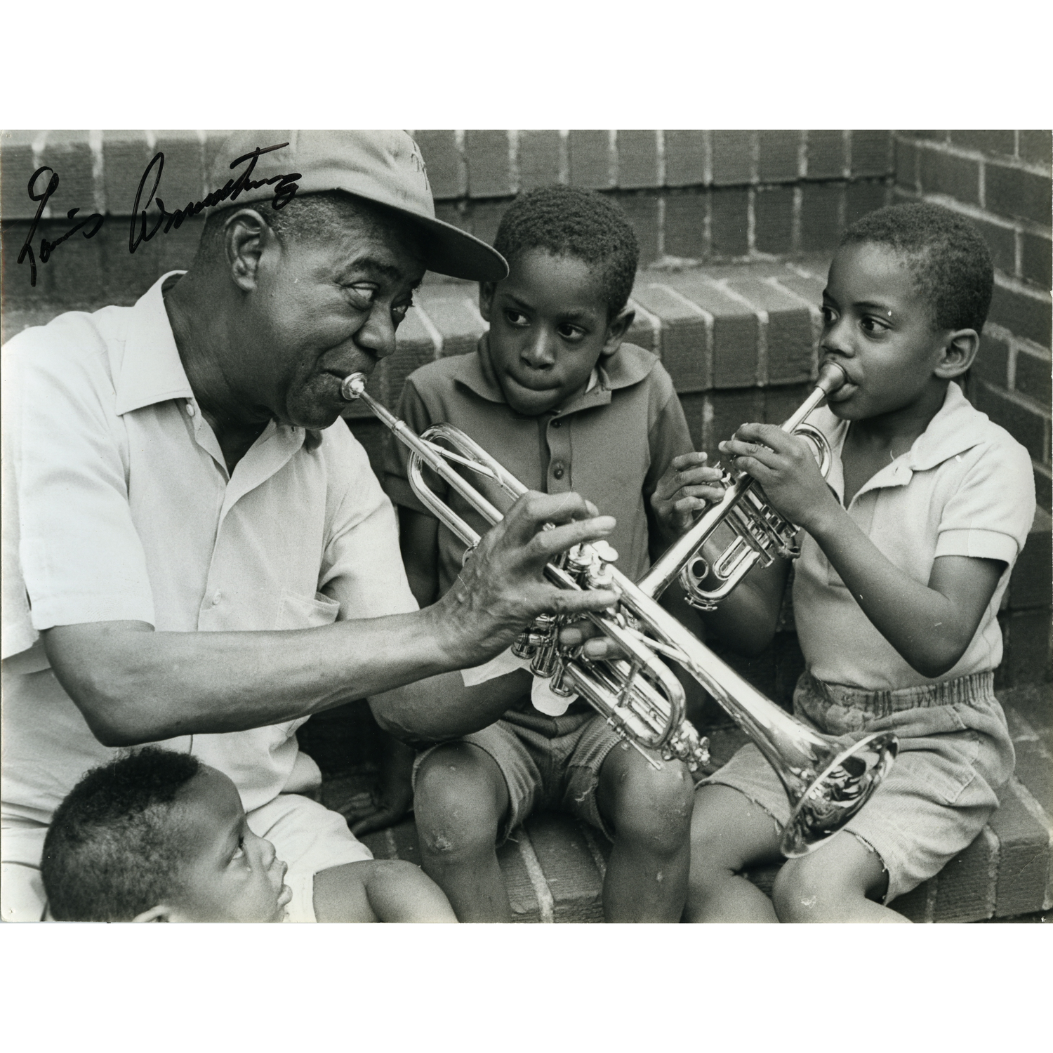 This endearing 8 x 10 Print of Louis on his steps with the neighborhood children is among the most popular images at the Louis Armstrong House Museum.